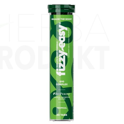 DUOLIFE Boost Formula FIZZY EASY Q10 COMPLEX je doplnok stravy vo forme šumivých tabliet. Zložky doplnku stravy DUOLIFE Boost Formula FIZZY EASY Q10 COMPLEX majú cenné účinky - vrátane: pomáhajú chrániť bunky pred oxidačným stresom a-d , pomáhajú udržiavať zdravé kosti, vlasy, nechty a pokožku e,f a prispievajú k udržaniu správneho energetického metabolizmu g . Prípravok obsahuje koenzým Q10, resveratrol, lykopén, vitamíny C a E, minerály: zinok a selén a extrakt z čierneho zázvoru. Receptúra produktu bola dodatočne obohatená o BioPerine®* - vlastnú, patentovanú formulu prírodného pôvodu s výskumom overenými účinkami, ktoré zlepšujú vstrebávanie živín obsiahnutých v doplnku stravy.