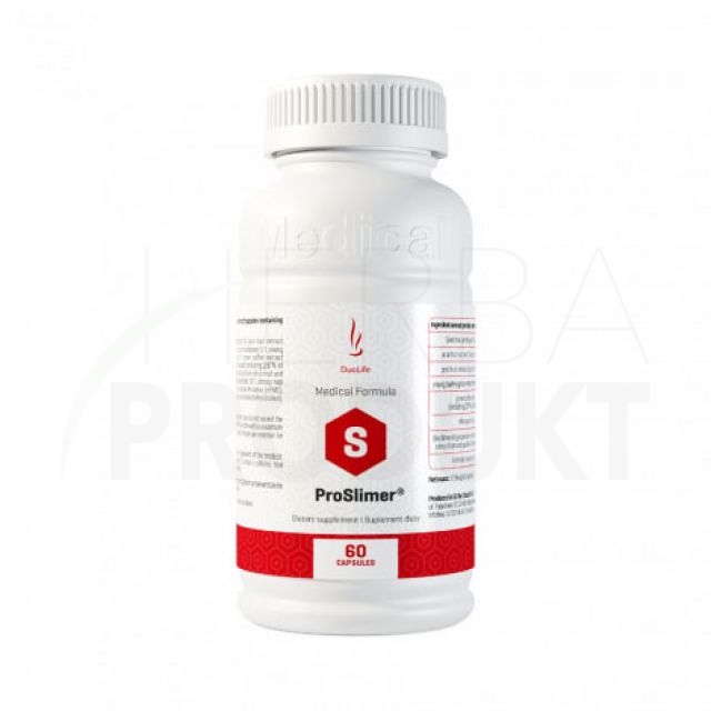 DuoLife Medical Formula ProSlimer® - Výživový doplnok ProSlimer® vďaka svojej inovačnej receptúre a bohatému zloženiu podporuje efektívne a zdravé znižovanie hmotnosti. Stimuluje metabolizmus, pozitívne vplýva na redukciu tukového tkaniva a na optimálne viazanie vody v organizme. Podporuje tiež udržiavanie stabilnej koncentrácie cholesterolu v organizme, podporuje tráviaci proces.
