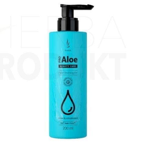 Pro Aloe Face Cleansing Gel 200 ml je gél na očistu tváre, ktorý ju jemne zbavuje nečistôt, zvyškov mejkapu a nadmerného kožného mazu. Je obohatený o jemné látky, očisťujúce, zjemňujúce a zvlhčujúce pleť. V zložení obsahuje kombináciu 8 rastlinných výťažkov a šťavu z listov aloe, ktorá upokojuje a tíši. Pridaný vitamín PP rozjasňuje, poskytuje ochranný film a reguluje vylučovanie kožného mazu. Očisťujúci gél na umývanie tváre pomáha získať efekt žiariacej pokožky