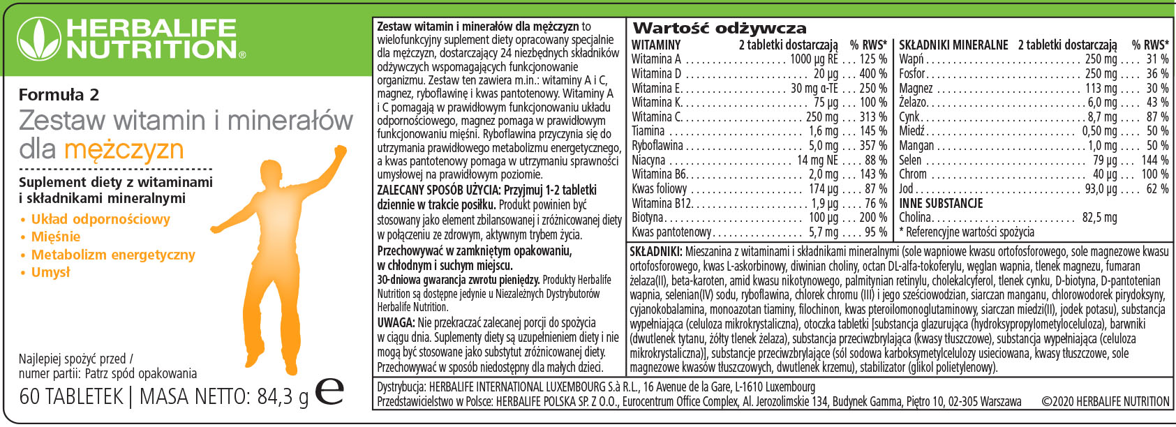 Objavte komplex vitamínov a minerálov pre mužov Formula 2, čo je ľahký spôsob ako si zabezpečiť príjem 24 živín, ktoré podporujú potreby vášho tela. Obsahuje esenciálne vitamíny a minerály v tých správnych množstvách na naplnenie dennej zdravotnej potreby mužov.