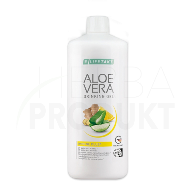 Aloe Vera Drinking Gél Immune Plus pre posilnenie imunitného systému, jeho aktivácii a stimulácii vďaka unikátnej kombinácii aktívnych zložiek. V porovnaní s Aloe Vera Drinking Gélom Traditional s medom obsahuje Immune Plus navyše 6 posilňovačov imunity: zázvor, citrón, med, vitamín C, zinok a selén. Immune Plus je tak skutočným odborníkom na imunitný systém a komplexným posilnením telu vlastného imunitného systému.
