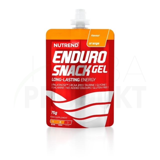 ENDUROSNACK GEL príchuť pomaranč: voda, 31,5% izomaltulóza - Palatinose™ (je zdrojom fruktózy a glukózy), glukóza, zahusťovadlo xantánová guma, taurín, glycín, L-leucín, L-alanín, regulátory kyslosti kyselina citrónová a kyselina jablčná, L-izoleucín, L- valín, aróma, konzervanty benzoan sodný a kyselina sorbová, L-karnozín, sladidlá acesulfam K a sukralóza.