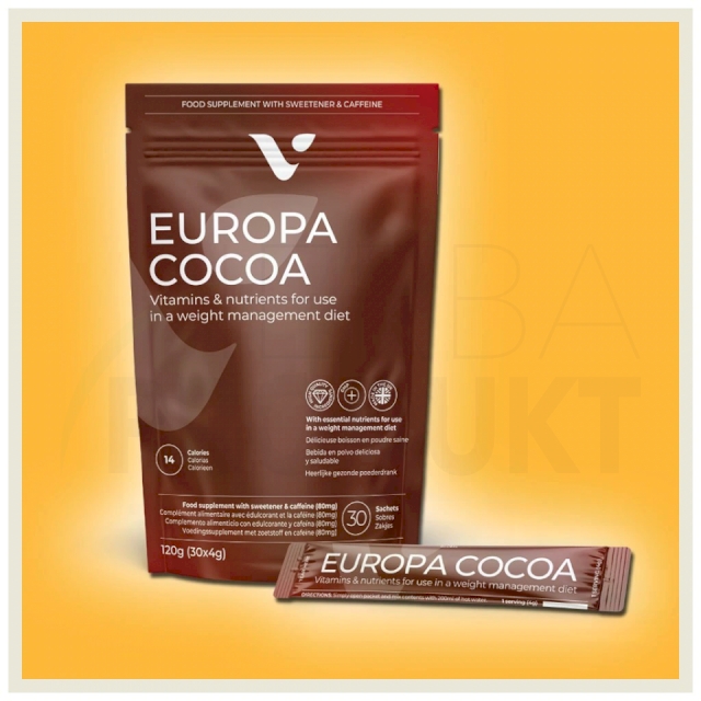 Europa Cocoa kombinuje lahodnú chuť prémiového kakaa s funkčnými živinami, ktoré podporujú energiu, sústredenie a celkovú pohodu. Každá porcia obsahuje kofeín, vitamín B6 a chróm, ktoré dopĺňajú vašu dennú rutinu ako súčasť vyváženého životného štýlu.